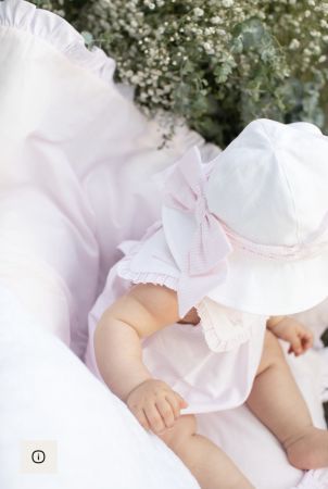 White Pique Hat with Pink Bow 3022